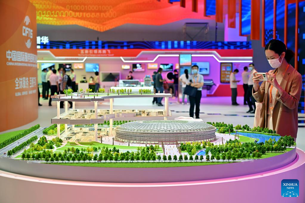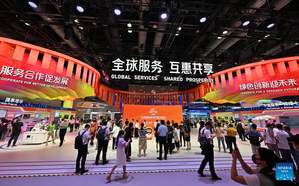 Photo taken on Sept. 1, 2022 shows the Achievement Exhibition of China's Trade in Services during the 2022 China International Fair for Trade in Services (CIFTIS) in Beijing, capital of China. The CIFTIS is held in Beijing from Aug. 31 to Sept. 5. (Xinhua/Hao Zhao)
