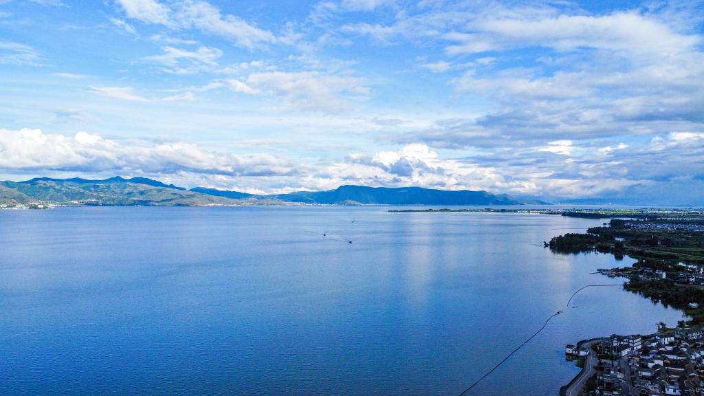 Aerial photo taken on Aug. 27, 2022 shows a view of Erhai, one of the largest plateau lakes in Dali, southwest China's Yunnan Province. (Xinhua/Ma Zhunzhao)