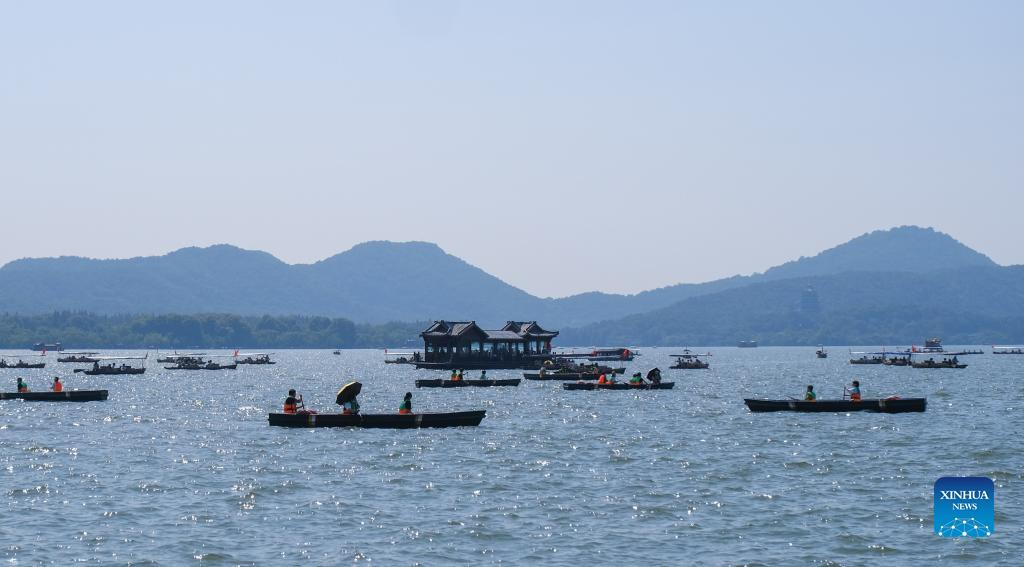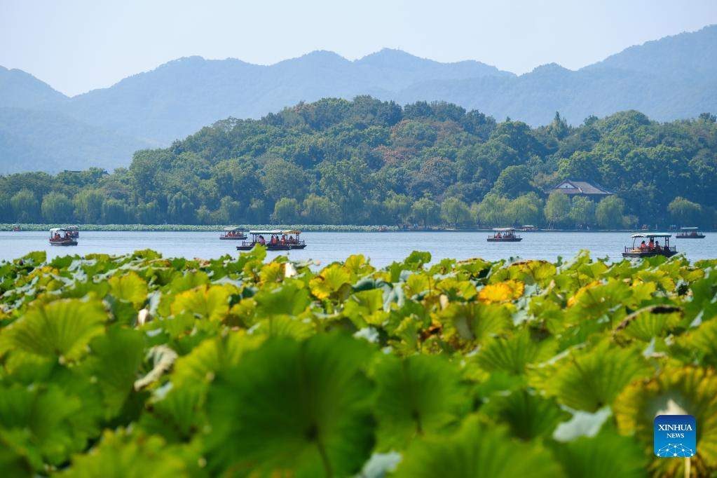 Tourists take boats at the West Lake scenic area during the National Day holiday in Hangzhou, east China's Zhejiang Province, Oct. 2, 2022. (Xinhua/Xu Yu)