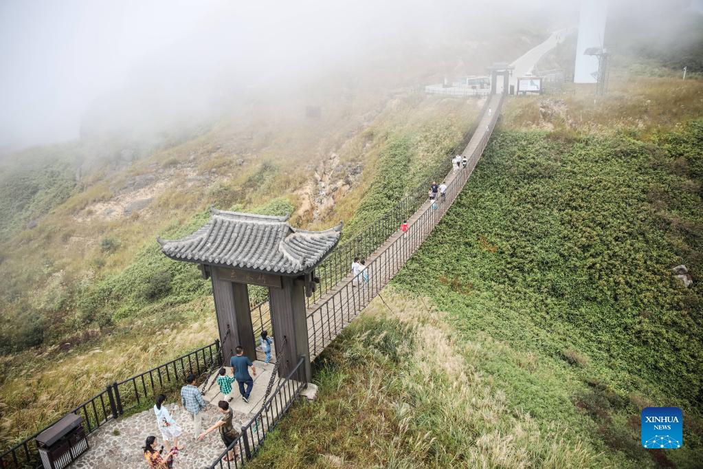 Tourists visit Yunbingshan scenic area during the week-long National Day holiday in Lanshan County, central China's Hunan Province, Oct. 1, 2022. (Photo by Peng Hua/Xinhua)