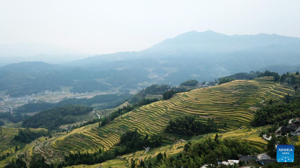 Aerial photo taken on Sept. 22, 2022 shows Ziquejie Terraces in Xinhua County, central China's Hunan Province. (Xinhua/Chen Zhenhai)