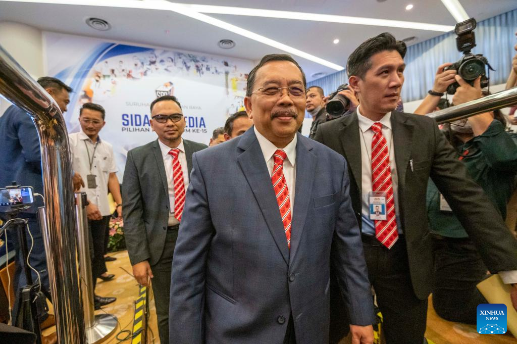 Malaysia's election commission chairman Abdul Ghani Salleh (front) leaves after a press conference in Putrajaya, Malaysia, Oct. 20, 2022. Malaysia will hold the general election on Nov. 19, the country's election commission said on Thursday. The nomination of candidates will be held on Nov. 5, providing two weeks for official election campaigning, Abdul Ghani Salleh told a press conference. (Photo by Chong Voon Chung/Xinhua)