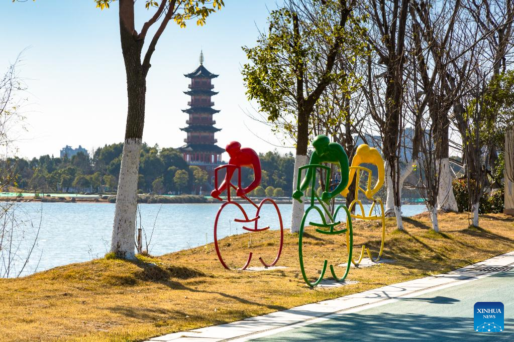 This photo taken on Jan. 12, 2021 shows view of Xianghu wetland park in Xihu District of Nanchang, capital of east China's Jiangxi Province. Nanchang has two wetlands of international importance, eight national wetland parks, four wetlands of provincial importance and five provincial wetland parks. It was accredited on Nov. 10, 2022 by the Ramsar Convention as an international wetland city. (Photo by Fan Wei/Xinhua)