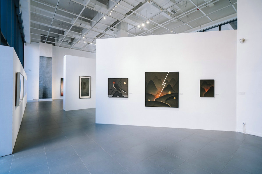 Ink Art: In A New Spirit, an exhibition University Arts Centre of The Chinese University of Hong Kong, Shenzhen, shows experimental works by ink artists from two generations. [Photo provided to China Daily]
