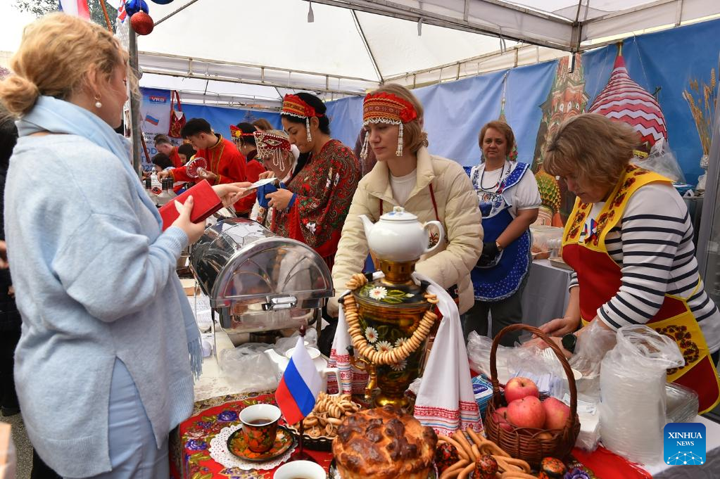 This photo taken on Dec. 11, 2022 shows foods at a booth during the 2022 International Food Festival in Hanoi, Vietnam. The 2022 International Food Festival took place here on Sunday, featuring more than 100 booths with unique culinary experiences from different cultures. (Xinhua/Hu Jiali)