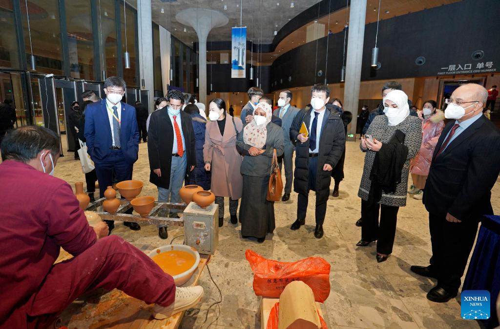 Guests visit an intangible cultural heritage exhibition during the fifth Arabic Arts Festival in Jingdezhen, east China's Jiangxi Province, Dec. 19, 2022.