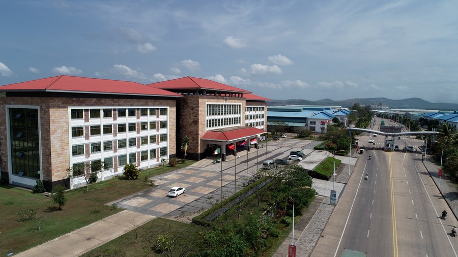 Aerial photo taken on July 19, 2022, shows the entrance of the Sihanoukville Special Economic Zone (SSEZ) in Preah Sihanouk province, Cambodia.(SSEZ/Handout via Xinhua)