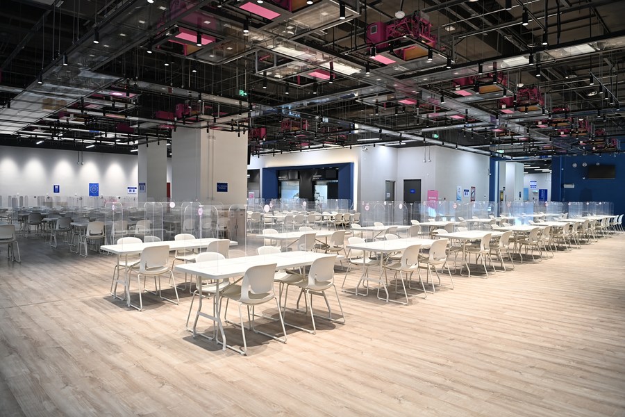 A photo taken on Jan. 10, 2022 shows the Media Dining Hall of the Main Media Center for Beijing 2022 Olympic and Paralympic Winter Games. (Xinhua/He Changshan)
