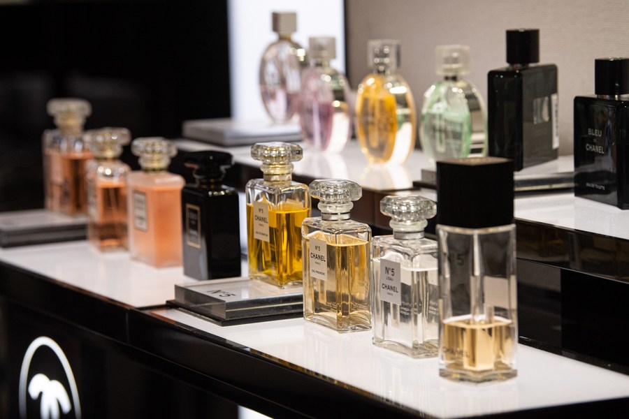 Customers select cosmetics at a duty-free shop in Haikou, south China's Hainan Province, Jan. 29, 2023.(Xinhua/Pu Xiaoxu)