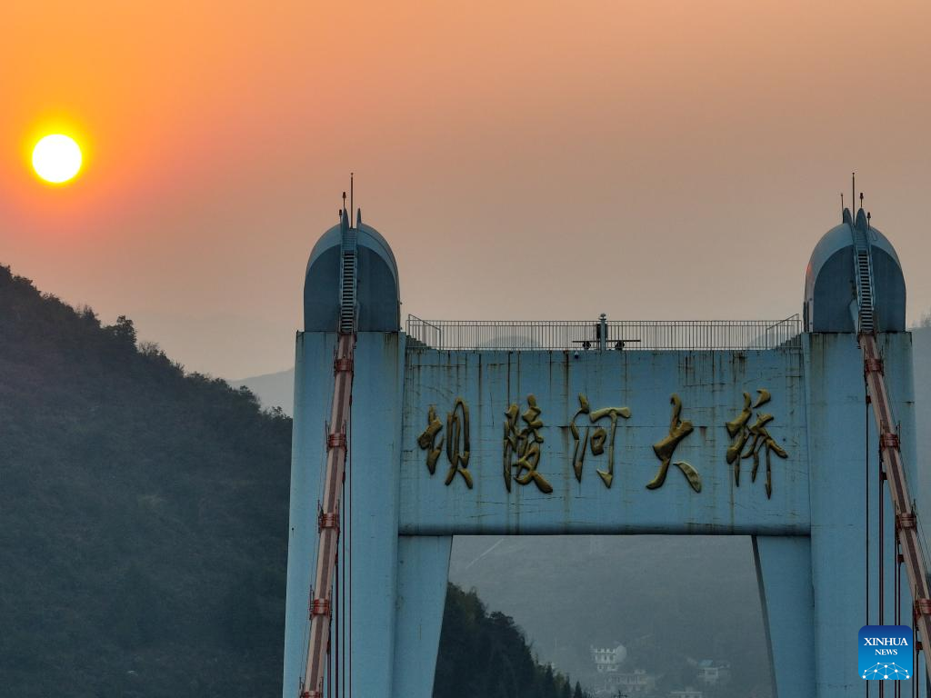 This aerial photo taken on Feb. 1, 2023 shows the Baling River bridge in southwest China's Guizhou Province. Guizhou has nearly half of the 100 tallest bridges in the world. Due to the large number of bridges, their types and complex technologies used in the construction of the bridges, the province is known as "the museum of world bridges". (Xinhua/Ou Dongqu)