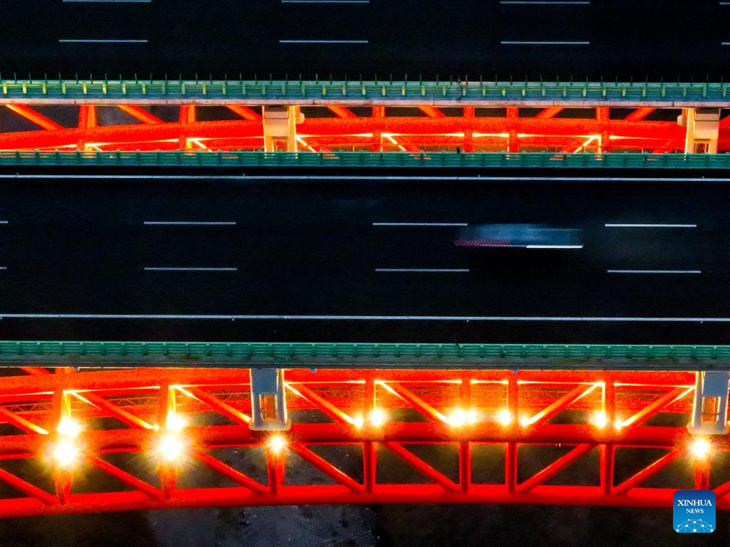 This aerial photo taken on Feb. 1, 2023 shows the Huayudong bridge in southwest China's Guizhou Province. Guizhou has nearly half of the 100 tallest bridges in the world. Due to the large number of bridges, their types and complex technologies used in the construction of the bridges, the province is known as "the museum of world bridges". (Xinhua/Ou Dongqu)