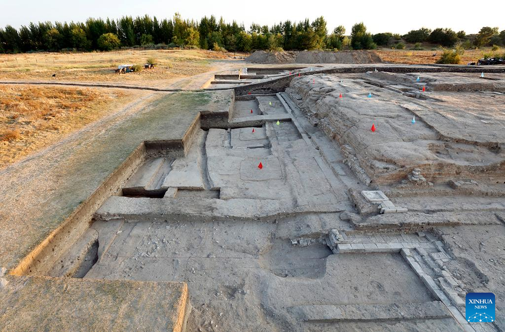 This photo taken on Sept. 27, 2022 shows the south-facing building relics in a courtyard of the imperial city in the ruins of Shangjing, the ancient capital of the Liao Dynasty (907-1125), in Lindong Township of Bairin Left Banner, north China's Inner Mongolia Autonomous region. (Xinhua)