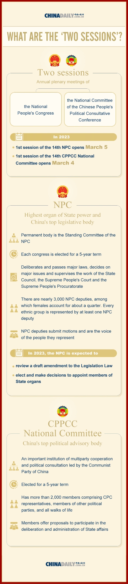 The "two sessions", the biggest annual event on China's political calendar, will begin this weekend. Check out this graphic to see what they are.