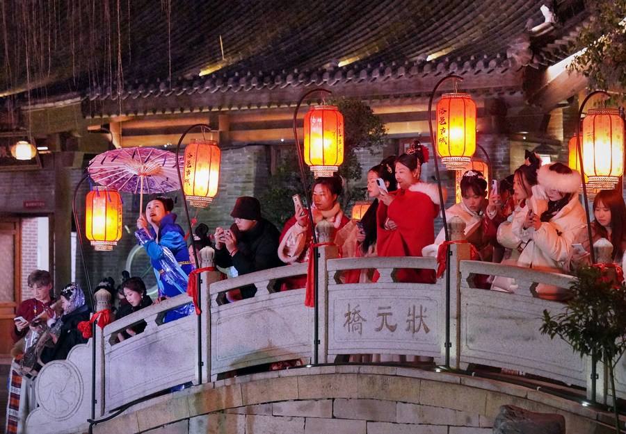 Tourists visit Luoyi ancient city in Luoyang, central China's Henan Province, Feb. 22, 2023. (Xinhua/Li An)