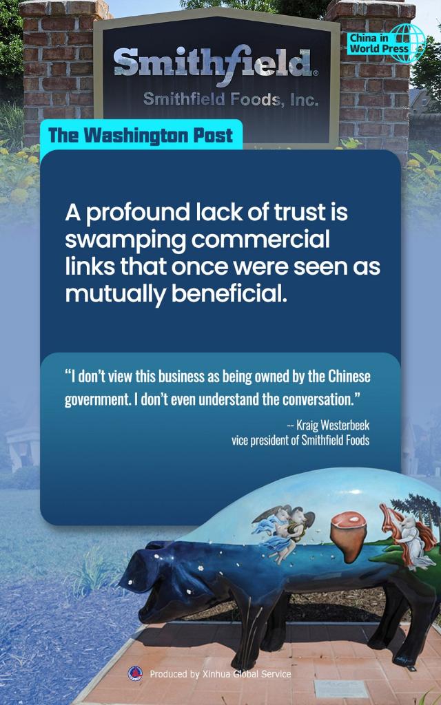 Executives of Smithfield Foods, a U.S. pork producer acquired in 2013 by a Chinese company, are exasperated by suggestions that Chinese ownership of American land is a threat to the country.