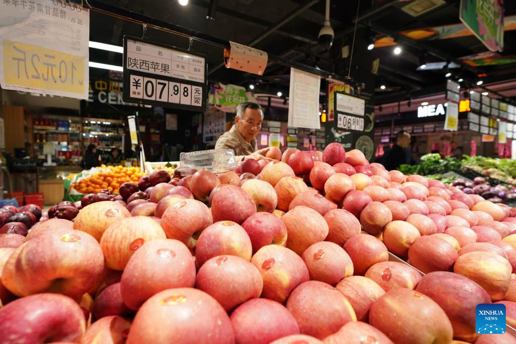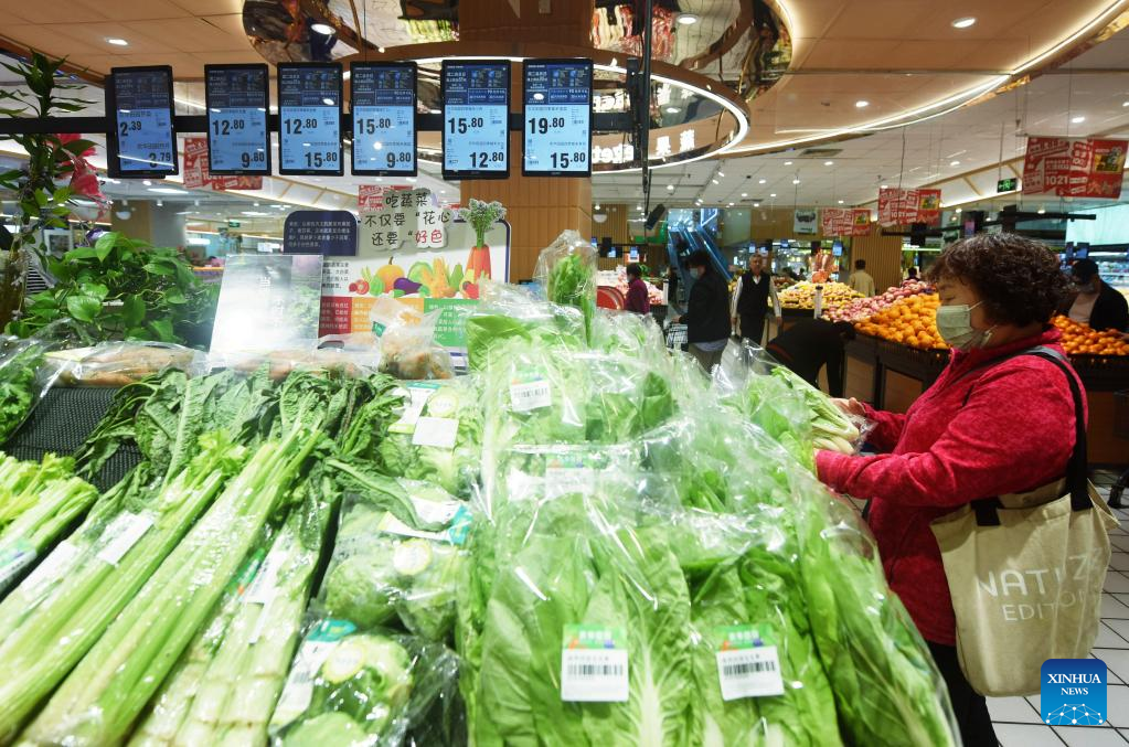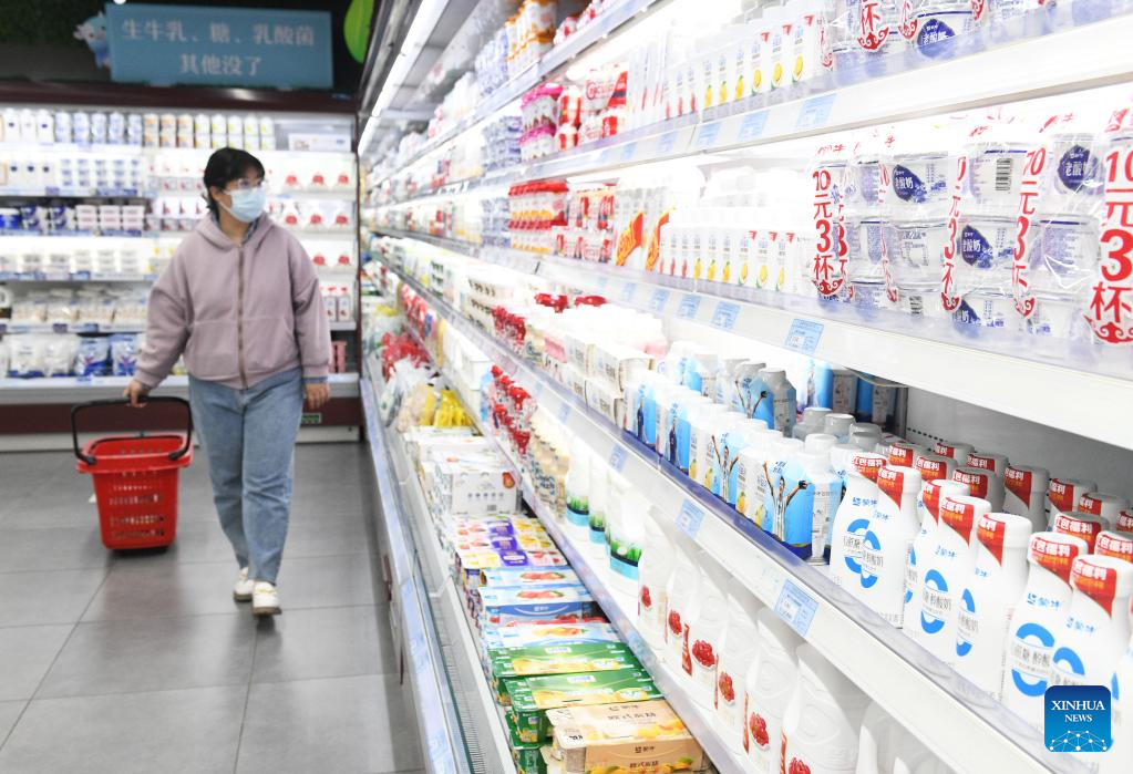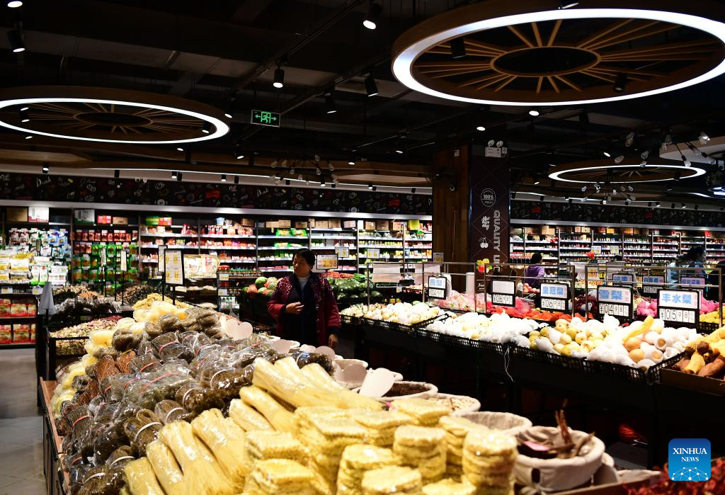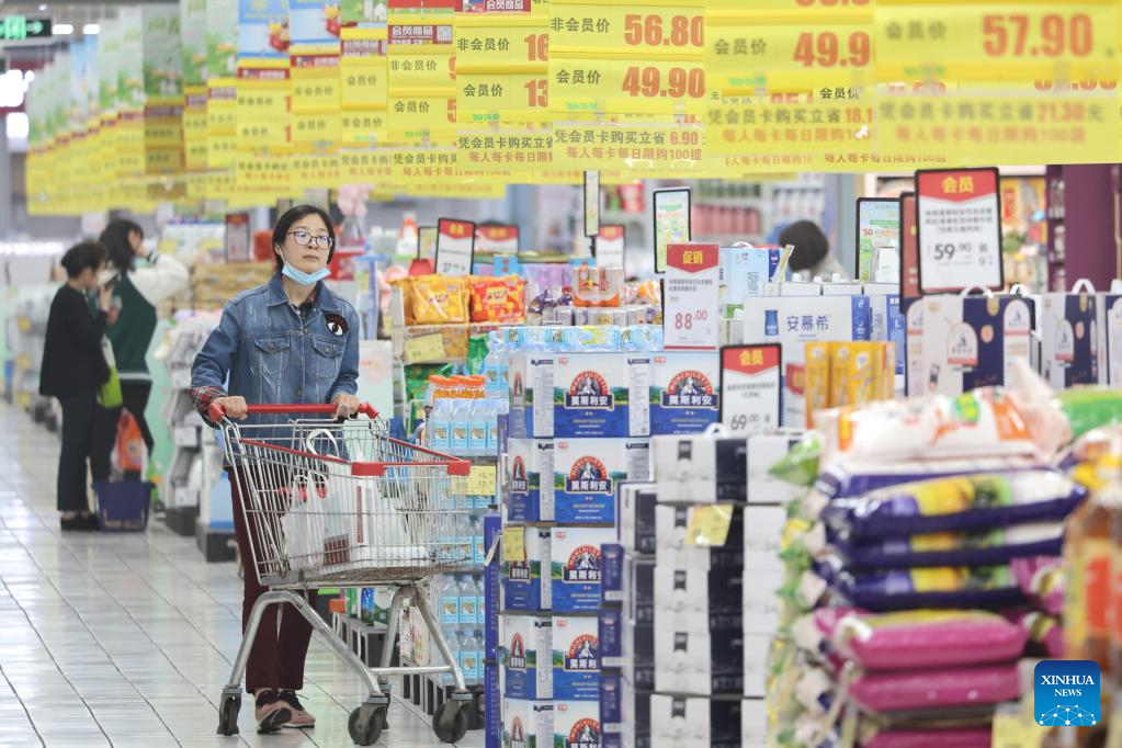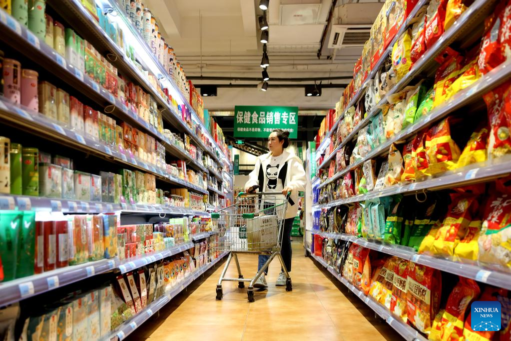 A consumer shops at a supermarket in Shijiazhuang, north China's Hebei Province, April 11, 2023. China's consumer prices registered a mild growth in March, in sharp contrast to the persistent global inflation, official data showed.