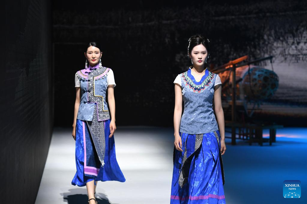 Models present ethnic costumes during a costume show in Nanning, south China's Guangxi Zhuang Autonomous Region, April 24, 2023. (Xinhua/Zhou Hua)