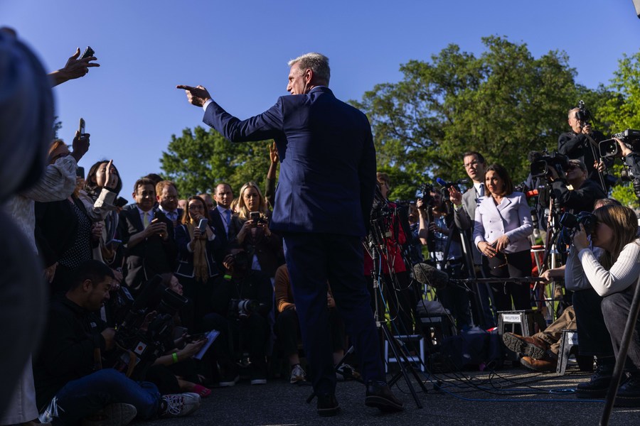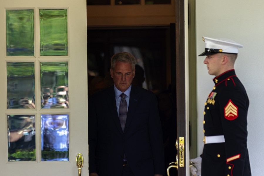 Republican House Speaker Kevin McCarthy exits the White House after a high-profile debt ceiling meeting in Washington, D.C., the United States, May 9, 2023. (Photo by Aaron Schwartz/Xinhua)