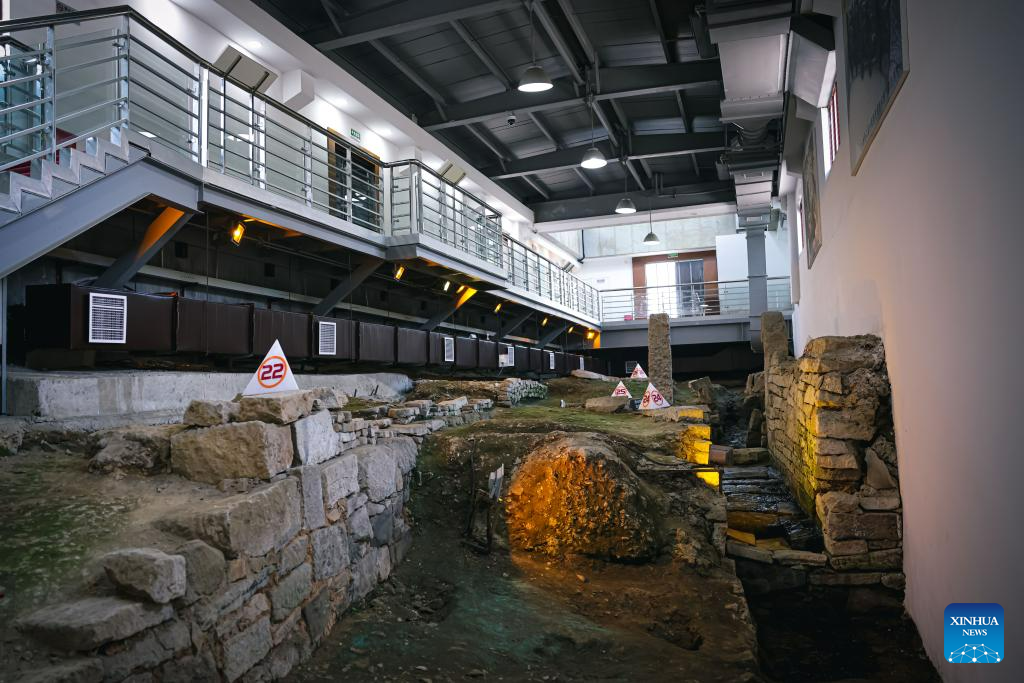 This photo taken on June 10, 2023 shows the interior of a museum on the historical sites of the Southern Song Dynasty (1127-1279) in Hangzhou, east China's Zhejiang Province.