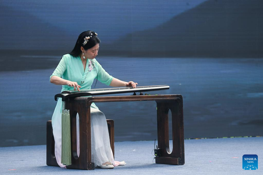 A Zhejiang-style Guqin performance is staged during an activity marking the Cultural and Natural Heritage Day in Hangzhou, east China's Zhejiang Province, June 9, 2023.