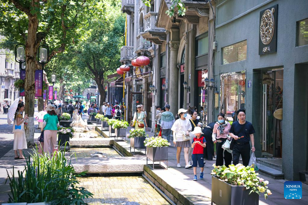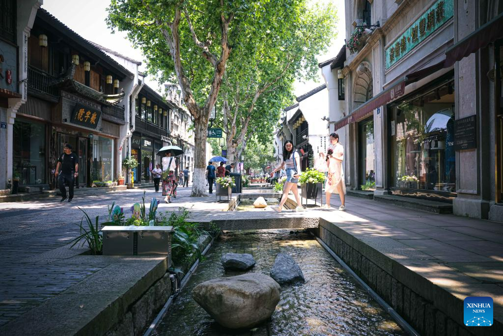 Tourists stroll along the Southern Song Imperial Street in Hangzhou, east China's Zhejiang Province, June 10, 2023.