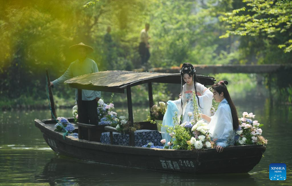 A performance is staged during a cultural event in Xixi Wetland in Hangzhou, capital of east China's Zhejiang Province, April 2, 2023.