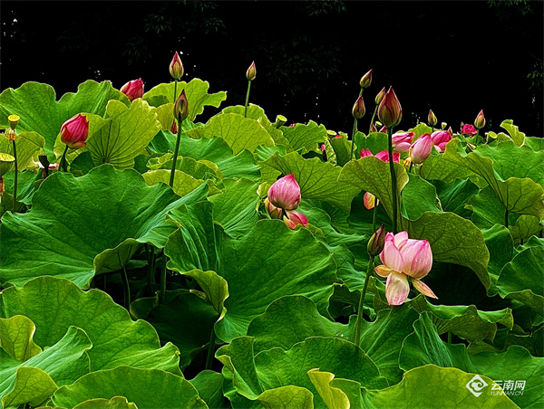 Dragon Boat Festival is the best time to appreciate lotus flowers in Jiangwei Village of Kunming City, Yunnan Province. Lush green leaves and blooming red lotuses captivate many citizens to visit.