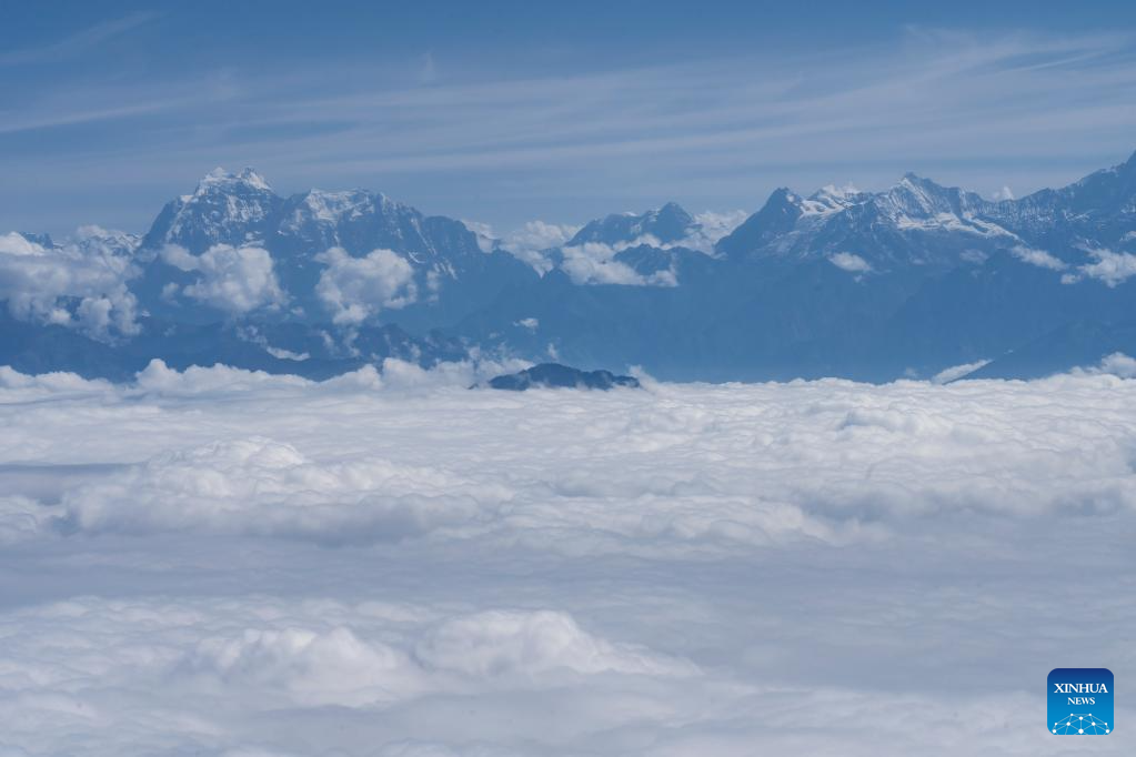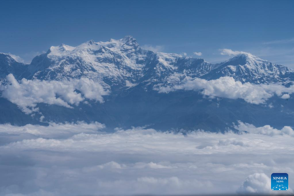 The Annapurna range is seen on a flight from Pokhara to Kathmandu in Nepal, June 25, 2023. (Photo by Hari Maharjan/Xinhua)