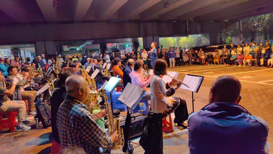 "The audience is our driving force, and enjoying such a cultural life after retirement makes me feel very happy," said Wang Fuxin, 82, who used to work in the construction industry, and is now the band's tuba player.