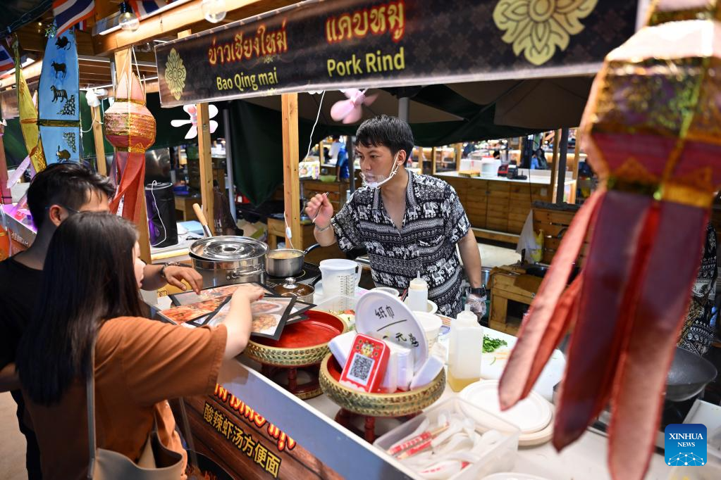 "The Thai food here is authentic, and the vendors speak Thai, which gives me an illusion of being in Thailand," said Zheng Sisi, a tourist from southern China's Guangdong Province.