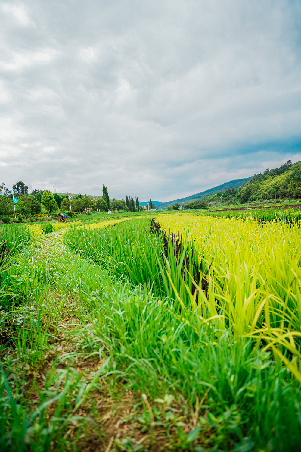 Walking through the vibrant fields feels like being immersed in a beautiful painting. The colorful rice dances with the wind, making the summer in this town truly enchanting and showcasing the charm of rural art to visitors. The sky in Yunnan doesn't need a filter. Just like the untouched colorful rice fields in Wenquan, it's picturesque summer scenery.