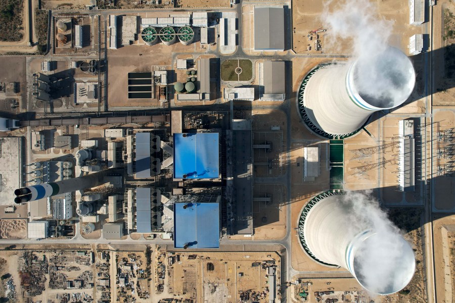 This aerial photo taken on Feb. 28, 2023 shows the view of the Thar Coal Block-I Coal Electricity Integration project in Sindh province, Pakistan.(Thar Coal Block-I Power Generation Company (Pvt) Limited/Handout via Xinhua)