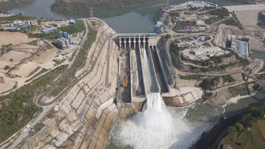 Aerial photo taken on April 9, 2022 shows a view of the Karot Hydropower Project in Punjab province, eastern Pakistan. (CTG/Handout via Xinhua)