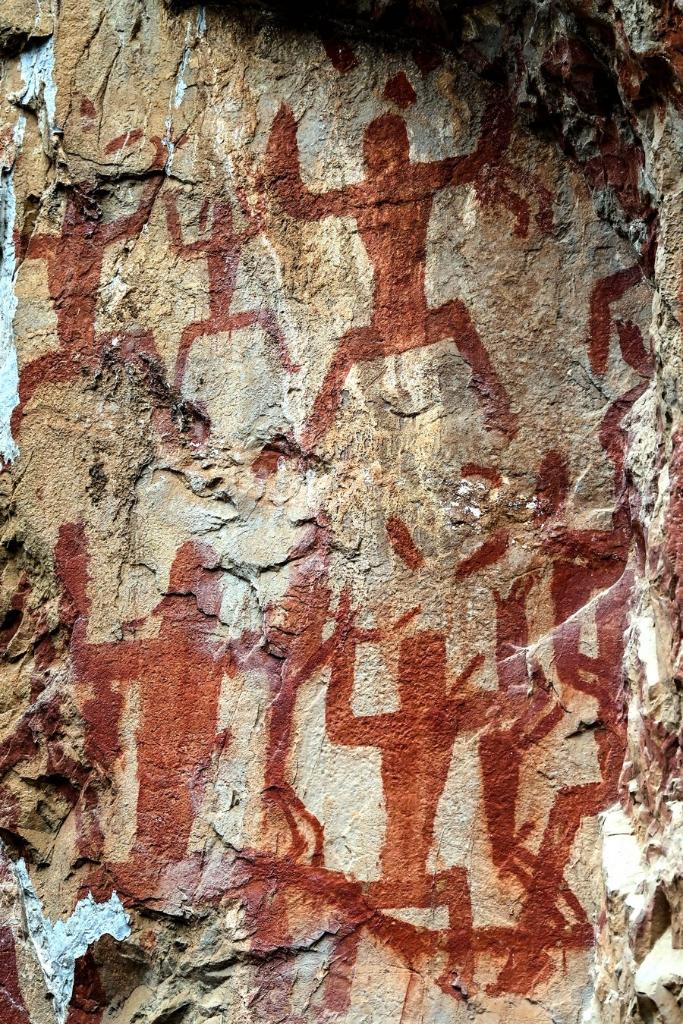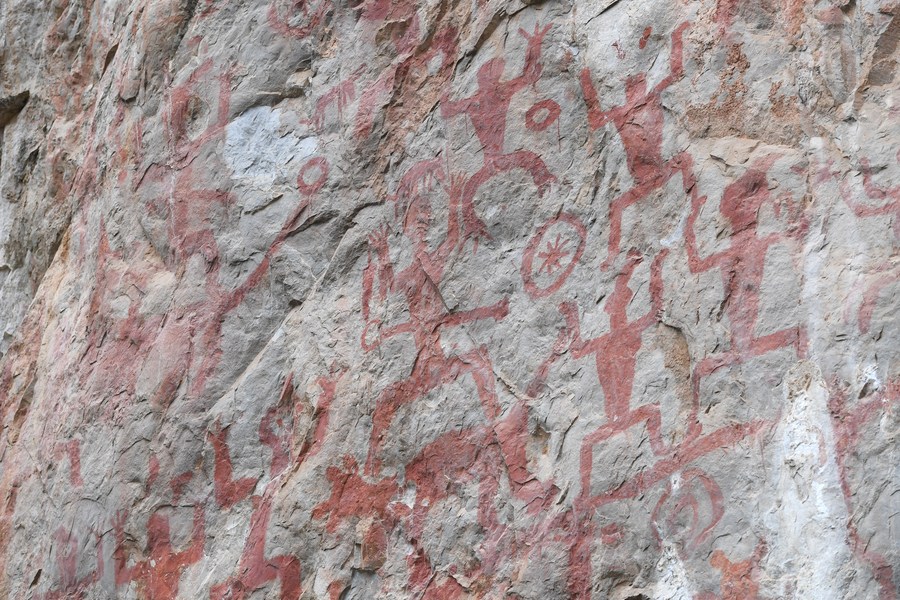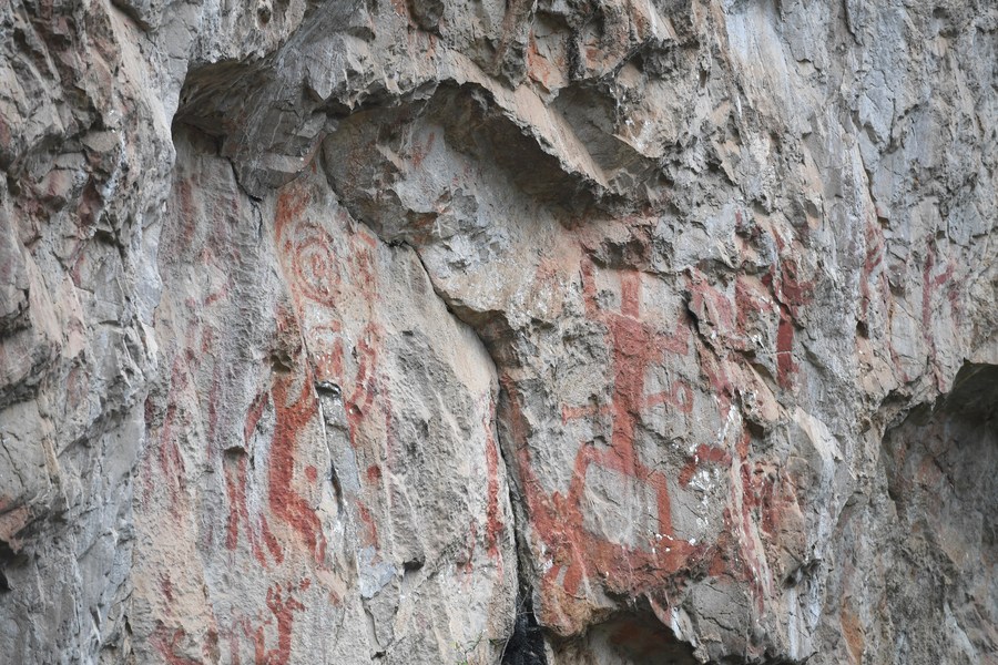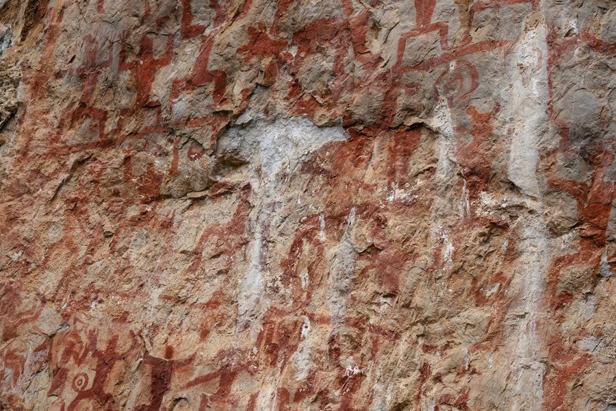 The brownish red paintings, created from the Warring States Period (475-221 BC) to East Han Dynasty (25-220), depict the sacrifices of the Luoyue people, ancestors of today's Zhuang ethnic minority.