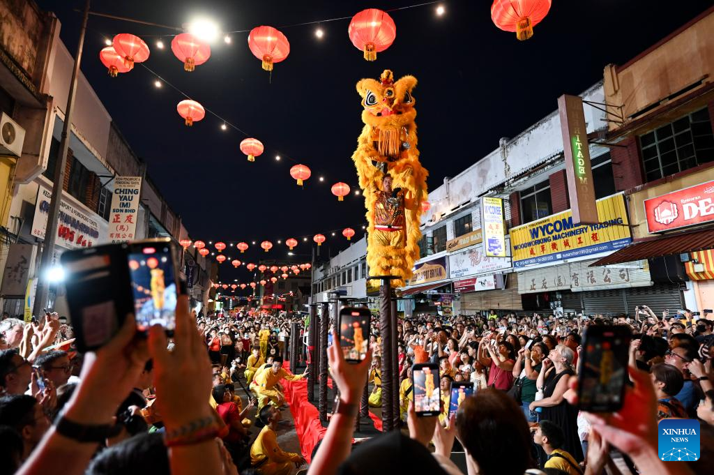 Artists perform lion dance during the Penang Chinese New Year Celebration in George Town, Penang, Malaysia, Feb. 18, 2024. (Photo by Xu Xinyu/Xinhua)