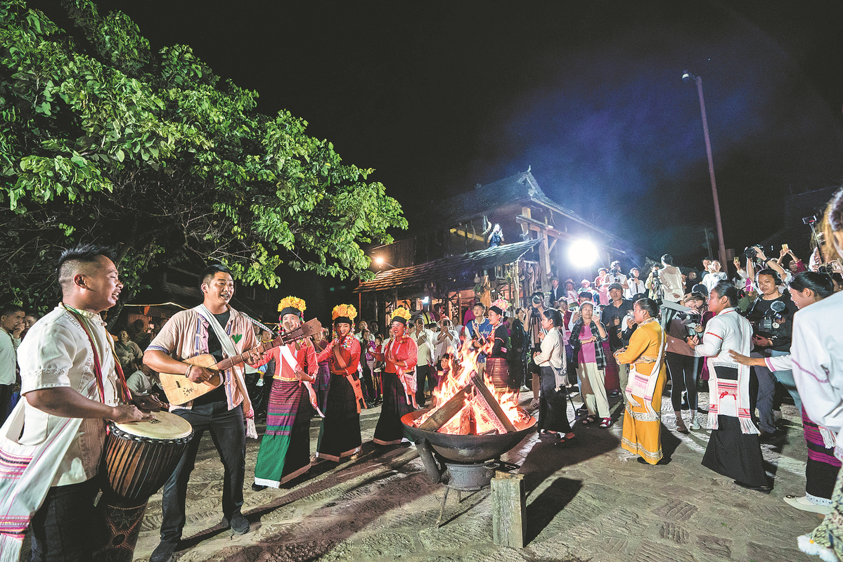 People celebrate around a bonfire in Wengji village of Pu'er, Yunnan province, in September, after the cultural landscape of tea forests there was listed as a World Heritage Site. HU CHAO/XINHUA