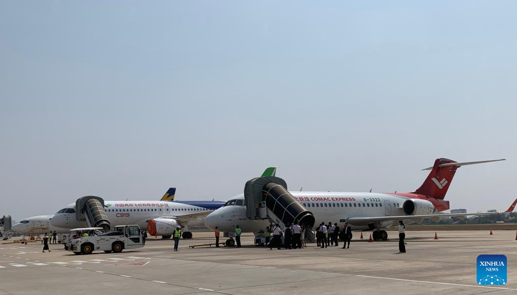 Chinese state-owned aircraft manufacturer Commercial Aircraft Corporation of China, Ltd. (COMAC) on Wednesday carried out a static display of its C919 aircraft and a demonstration flight of its ARJ21 jetliner in Cambodia.