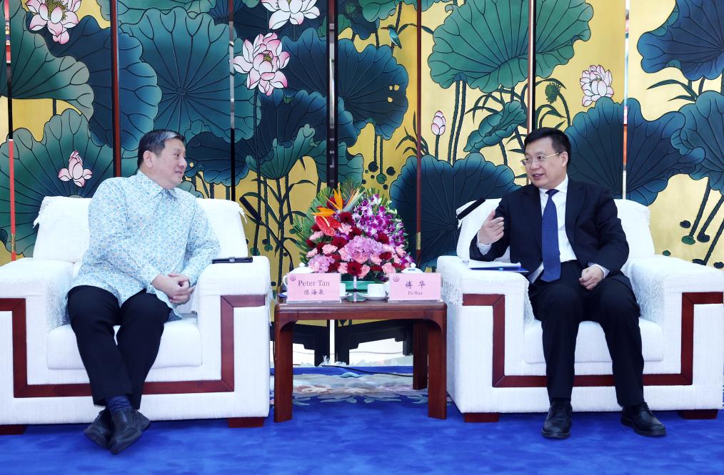 President of Xinhua News Agency Fu Hua met with Singaporean Ambassador to China Peter Tan in Beijing on Thursday.