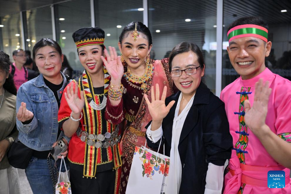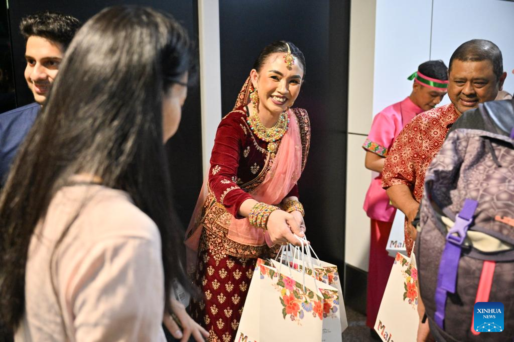 Passengers on board flight MU9629 are welcomed at Kuala Lumpur International Airport, Malaysia, March 16, 2024. China Eastern Airlines marked inaugural Kunming to Kuala Lumpur flight on Saturday. (Xinhua/Cheng Yiheng)