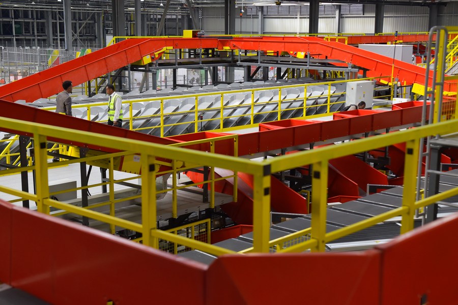 Photo taken on Feb. 29, 2024 shows the sorting machine at the e-commerce logistics hub in Addis Ababa, Ethiopia. (Xinhua/Michael Tewelde)