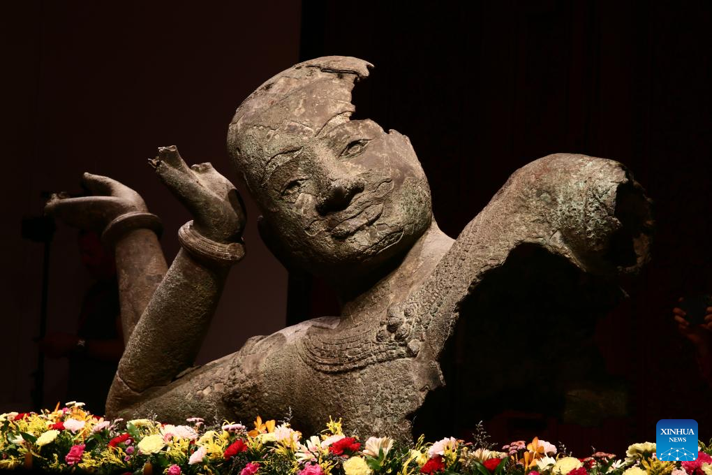 Discovered at the West Mebon temple in the famed Angkor Archaeological Park in northwest Cambodia's Siem Reap province in 1936 by French curator Maurice Glaize, this 11th-century sculpture is the largest bronze statue ever found on the Angkor site, said a news release after the ceremony.