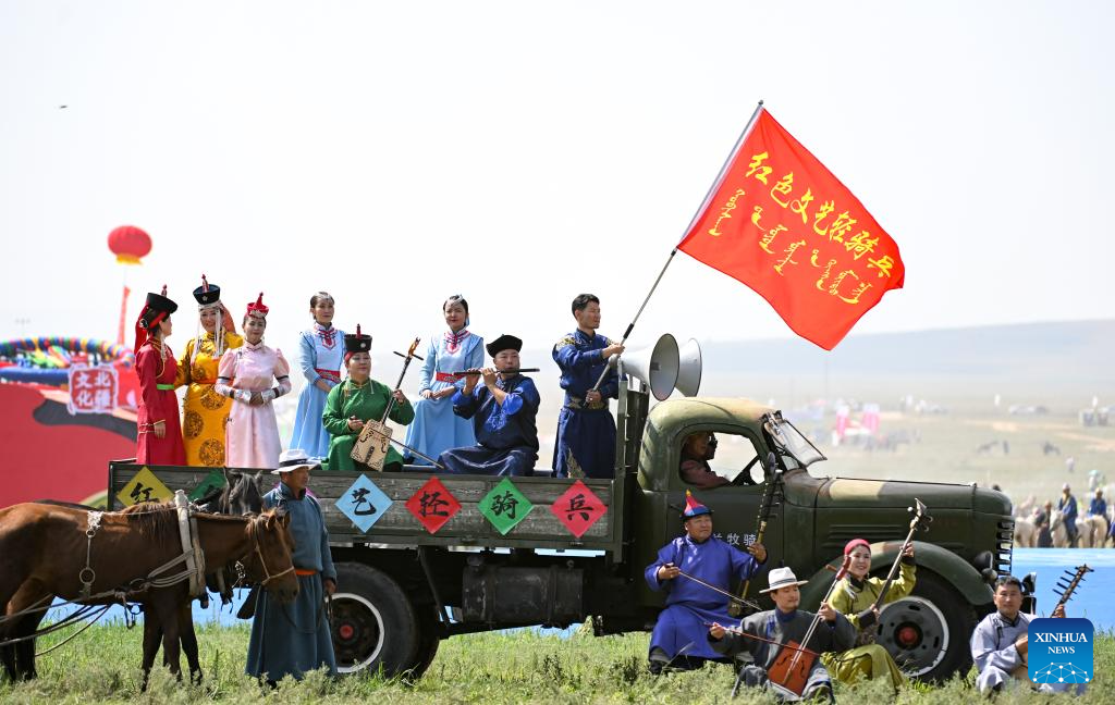 Actors perform during the opening ceremony of the 34th Naadam festival in Xilin Gol League, north China's Inner Mongolia Autonomous Region, July 14, 2024.
