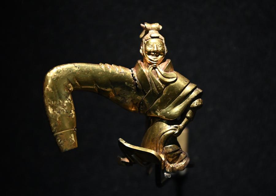 A dancing figurine is pictured during an exhibition commemorating the 50th anniversary of the discovery and excavation of the iconic Terracotta Warriors at the Emperor Qinshihuang's Mausoleum Site Museum in Xi'an, capital of northwest China's Shaanxi Province, Sept. 8, 2024. (Xinhua/Li Yibo)