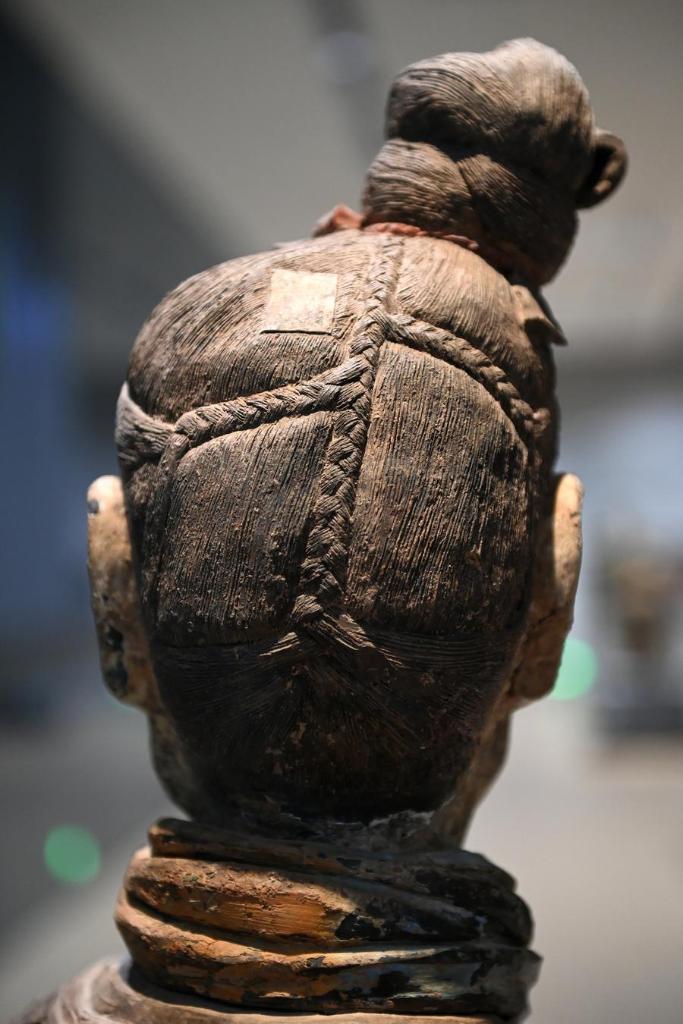 A figure of hands in sleeves is pictured during an exhibition commemorating the 50th anniversary of the discovery and excavation of the iconic Terracotta Warriors at the Emperor Qinshihuang's Mausoleum Site Museum in Xi'an, capital of northwest China's Shaanxi Province, Sept. 8, 2024. (Xinhua/Li Yibo)