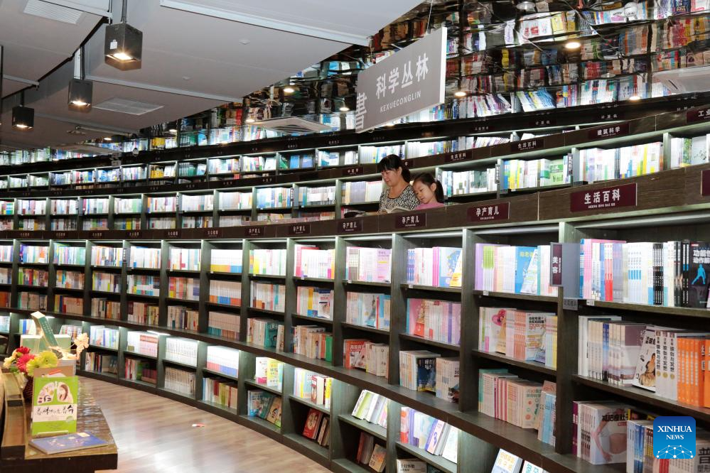 People select books at a bookstore in Tengzhou, east China's Shandong Province, Sept. 17, 2024. Chinese enjoyed a three-day holiday for the Mid-Autumn Festival, which fell on Sept. 17 this year. (Photo by Li Zhijun/Xinhua)