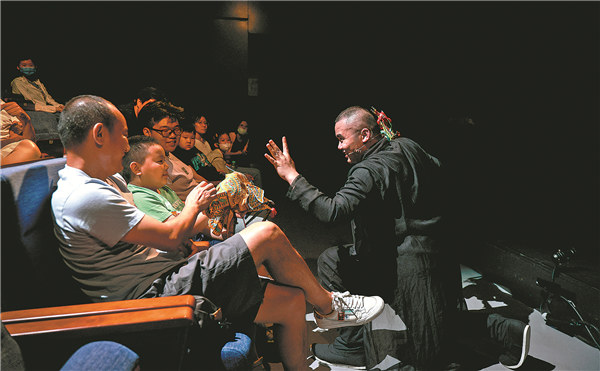 Hong interacts with the audience during the show at the Drum Tower West Theatre in Beijing. [Photo by Zhang Bonan/For China Daily]
