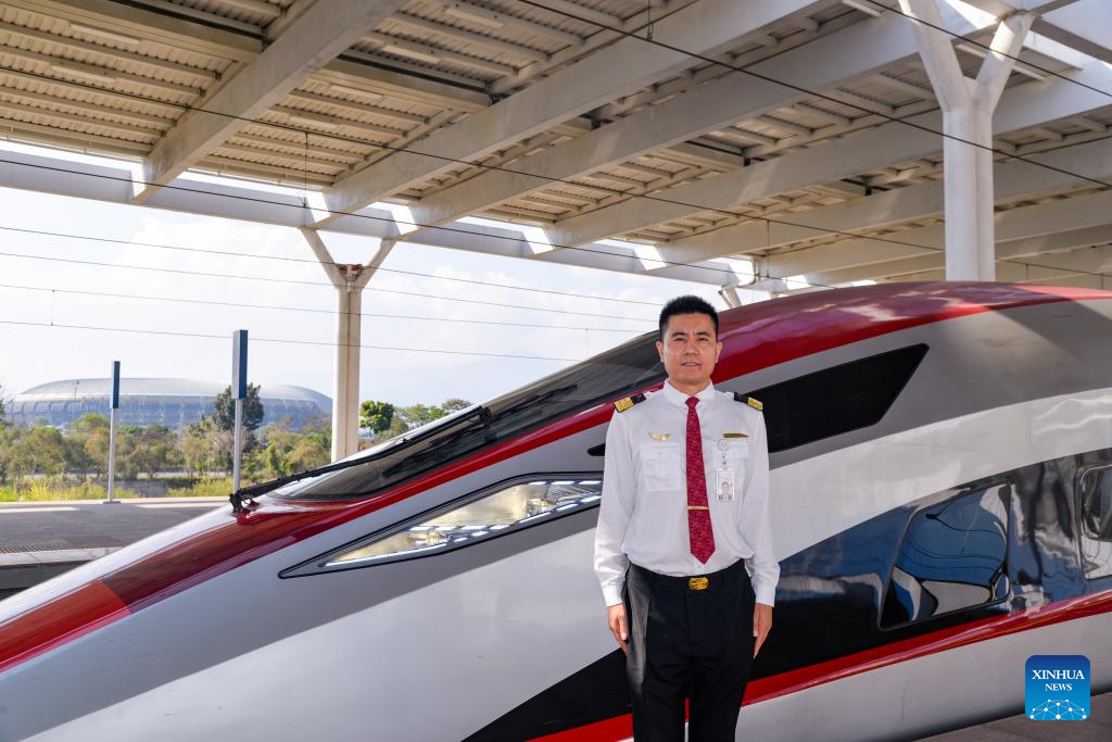 "The HSR works smoothly now, and is approaching its first anniversary of operation. I hope the reputation of Chinese-built high-speed railways will become even more prominent and continue to expand globally," Zhang said. (Xinhua/Xu Qin)