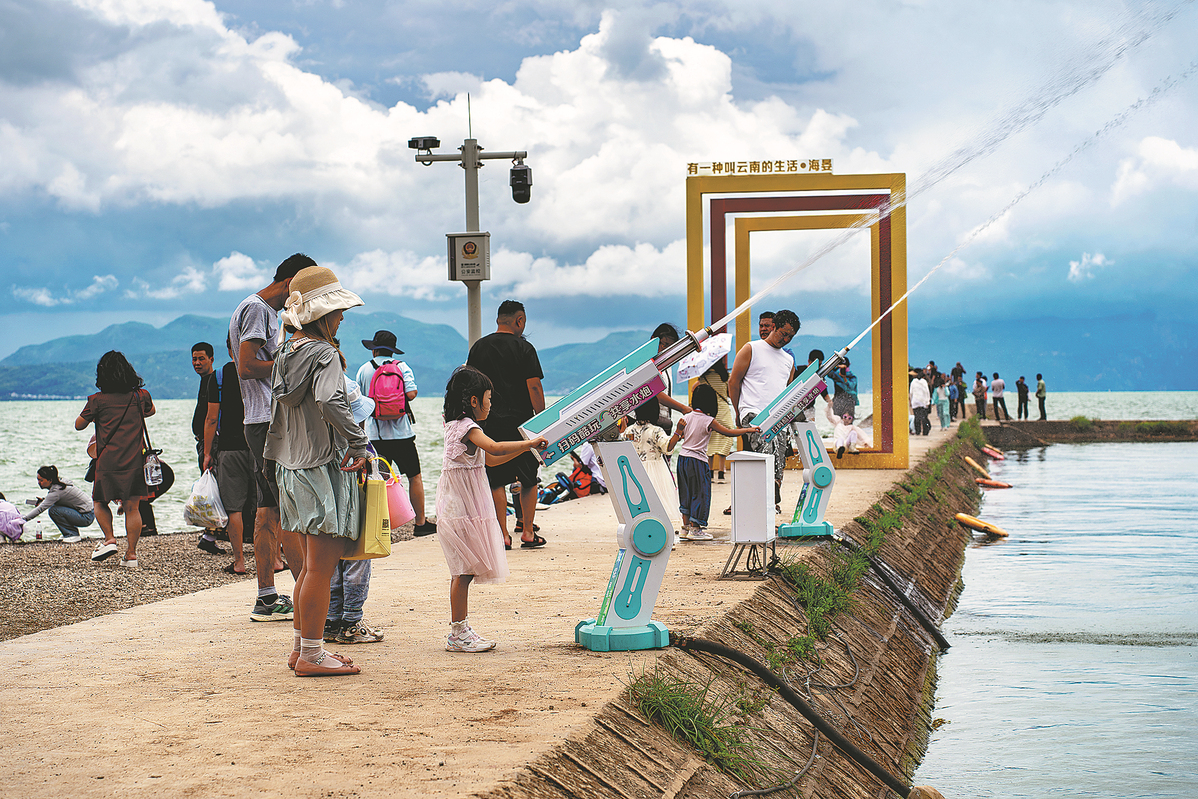 Tourists have fun at Haiyan village by the Dianchi Lake in Kunming, Yunnan province, in July. LIANG PINYAO/FOR CHINA DAILY