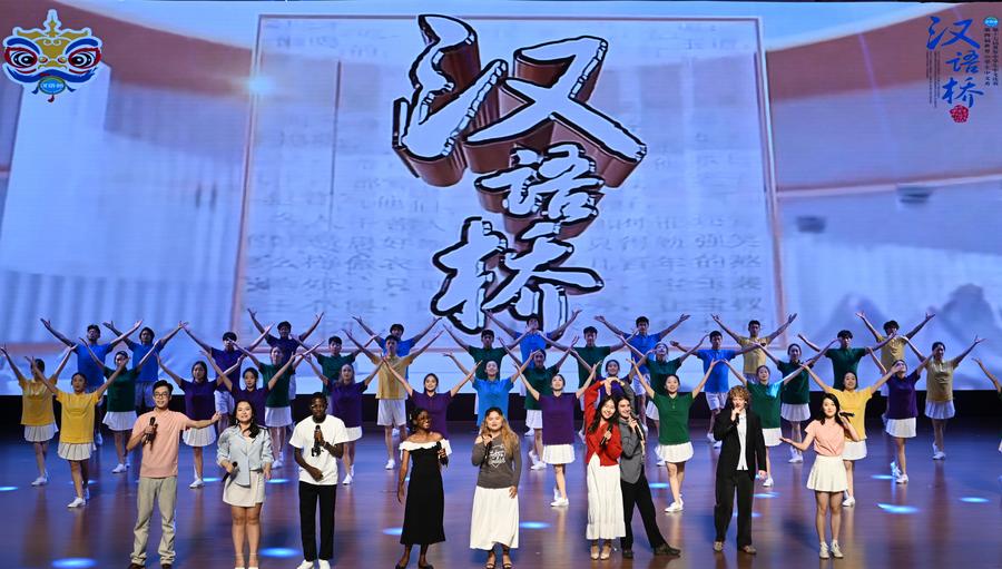 This photo taken on Oct. 17, 2024 shows the opening ceremony of the 17th "Chinese Bridge" Chinese proficiency competition for foreign secondary school students in north China's Tianjin. (Xinhua/Li Ran)