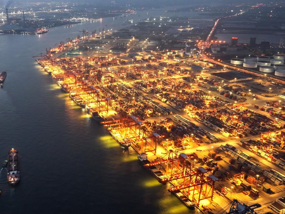 Night view of Qinzhou Port in Qinzhou, South China's Guangxi Zhuang autonomous region, in May. [Photo/Xinhua]